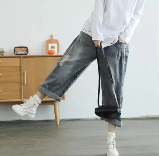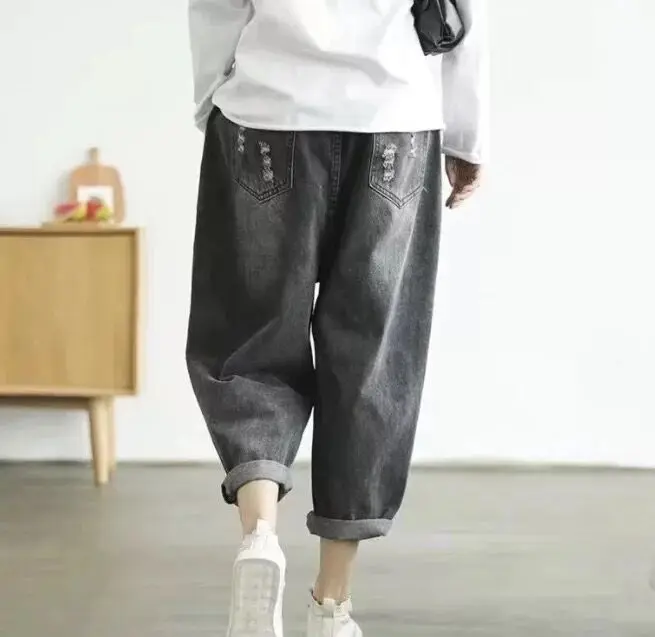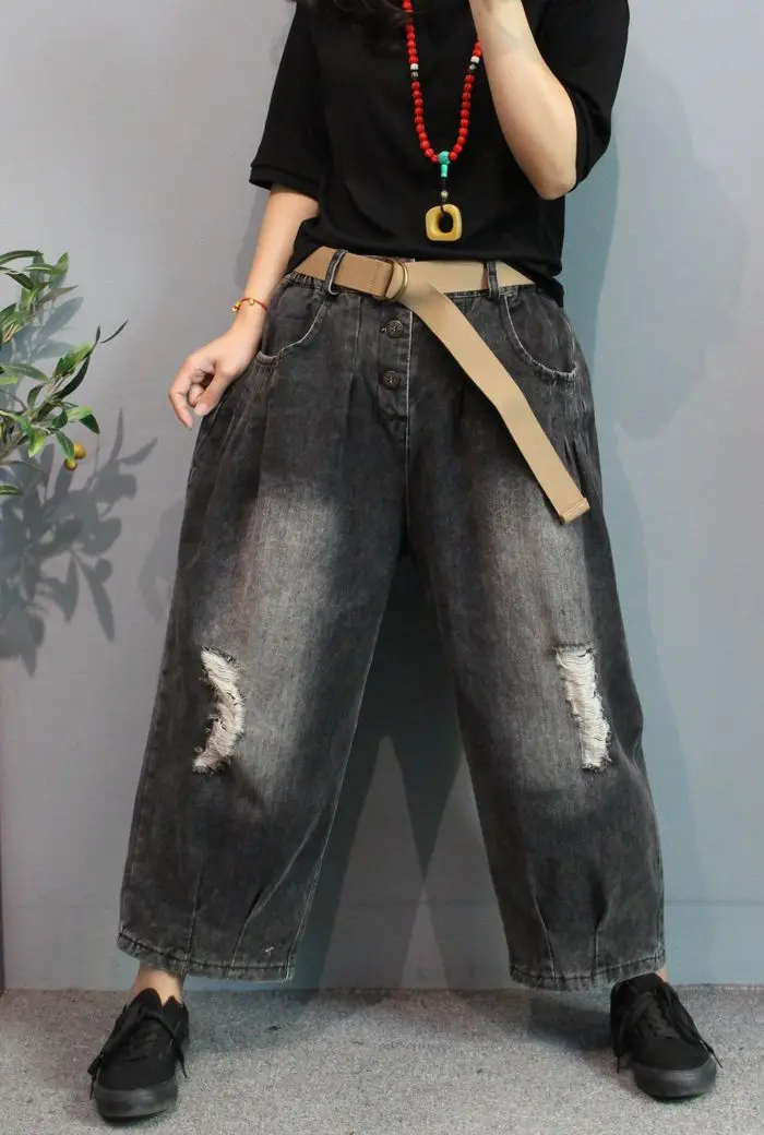 Price Description of Origional Spring Literature And Art Retro Faded with Holes Harem Jeans Loose-Fit WOMEN'S Pants Dad Pants Belt Included 8301