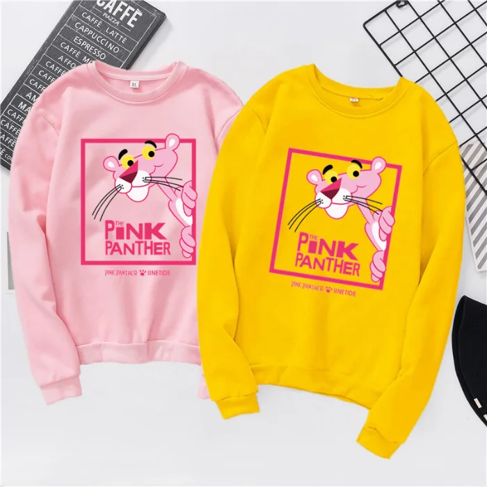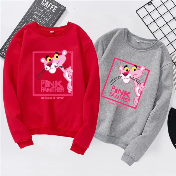 Special Price for Qrxiaer animal Leopard Cartoon Pink Panther Couple shirt women sweatshirt Autumn hoodie Streetwear Long Sleeve Women Winter coat