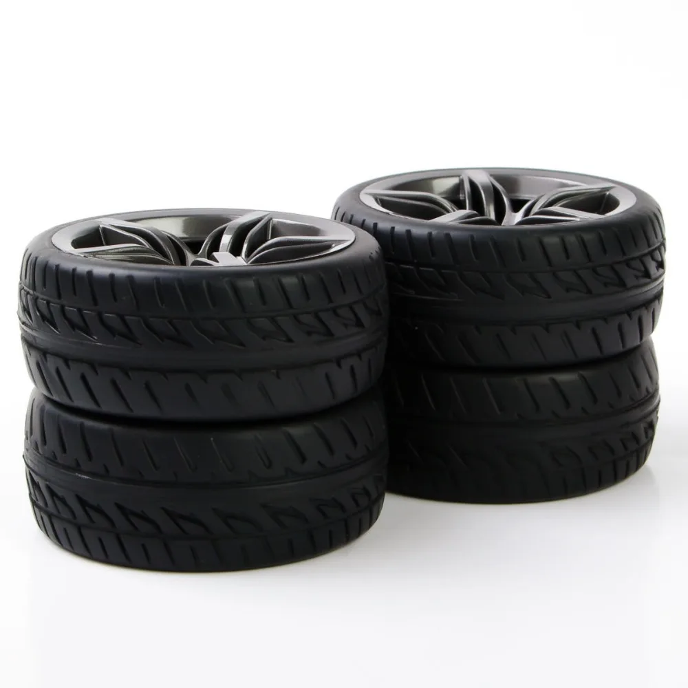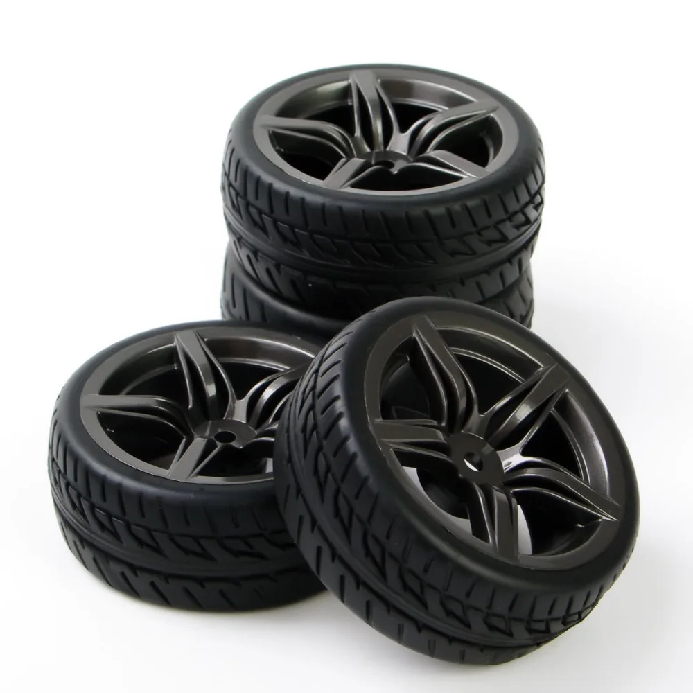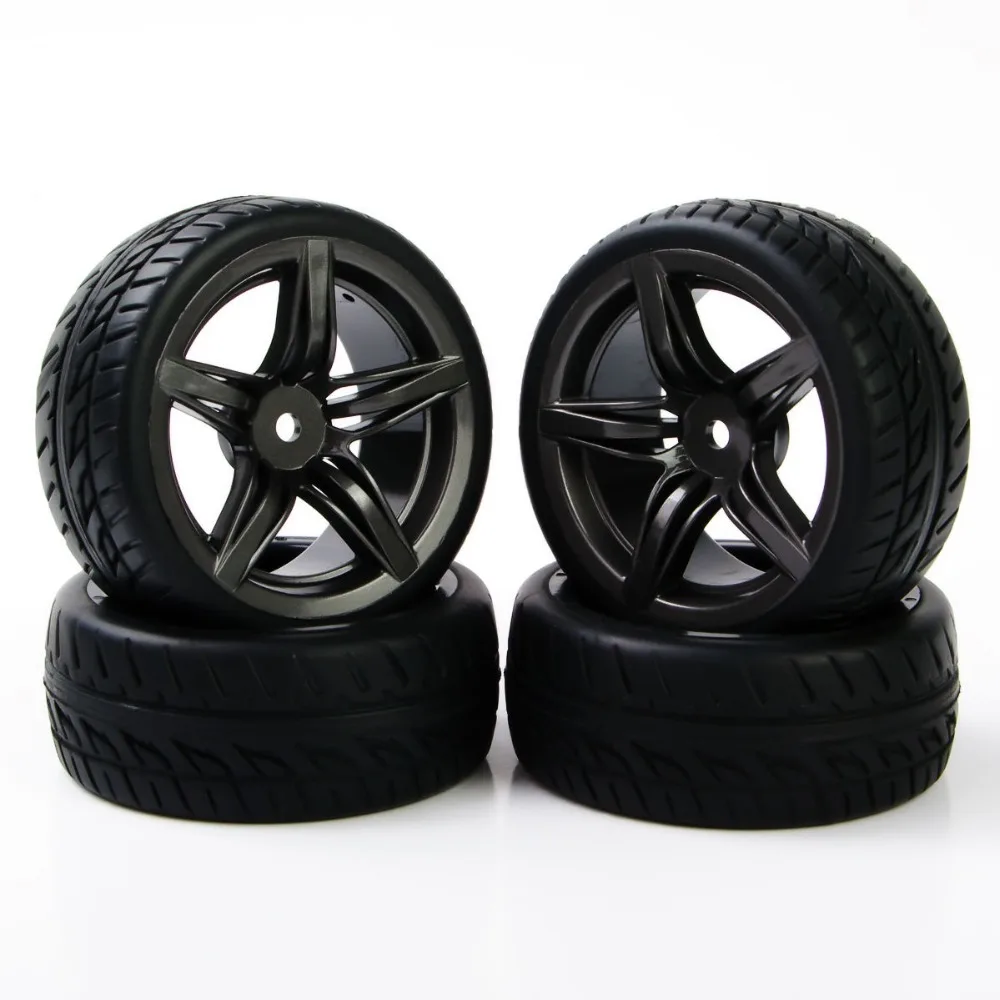 .Pictures of 4pcs 1:10 Flat On Road Car Accessories Rubber Tires Rims For HSP HPI Racing RC 1/10 car tire and wheels PP0150+12FM