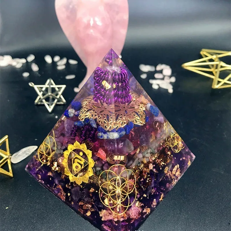AURA REIKI Orgonite Pyramid Ariel Maripura/Sahasrara Chakra Love Crystal Bring Lucky Stone Resin Pyramid Crafts Ornaments C0145