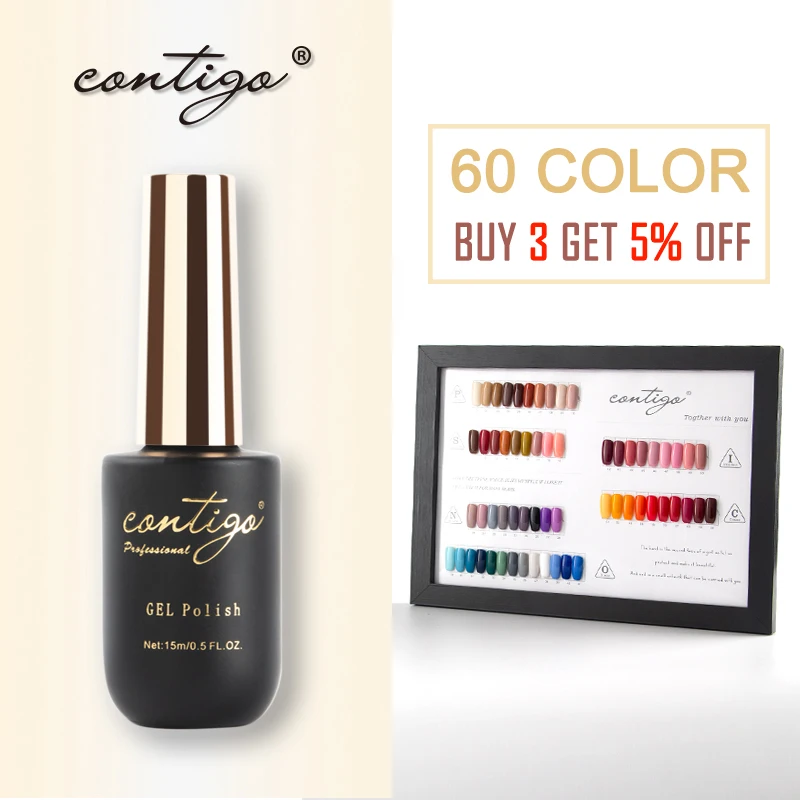 .Pictures of Contigo New 60Colors Gel Varnish Hybrid Nail Rubber Base Gel Top Coat UV Gelishpolish a Set of Manicure Lacquer For Nails Desgin