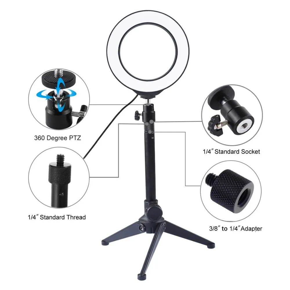.Gallery for Dimmable LED Selfie Ring Light Photography Fill Light with Light Stand & Cold Shoe Tripod Ball Head For YouTube Video Vlogging