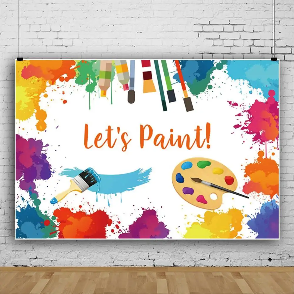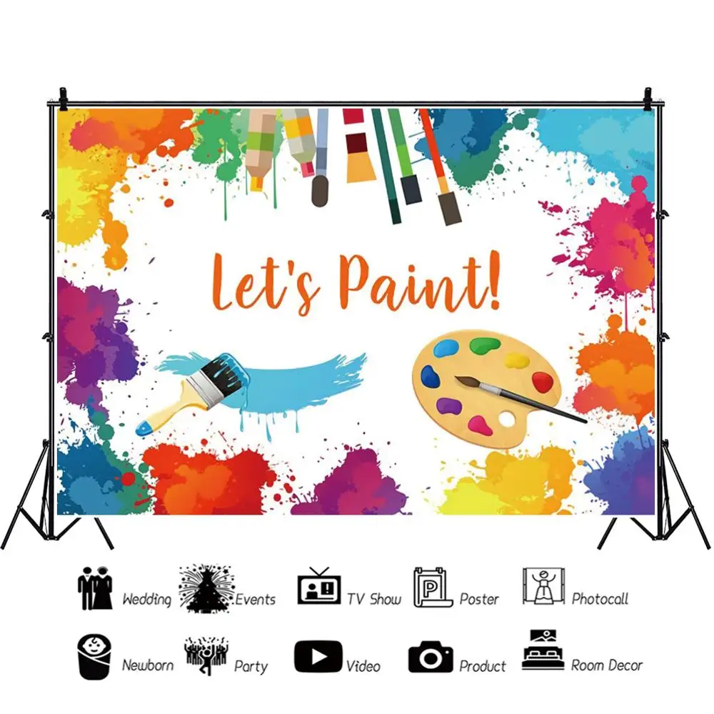 .Pictures for Laeacco Happy Birthday Baby Shower Let's Paint Photography Backdrop for Photo Studio Personalized Decor Photography Backgrounds