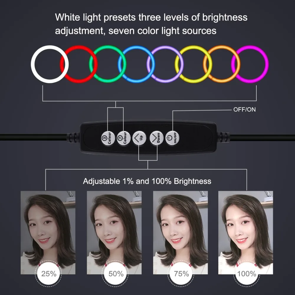 Limited Chance for 4.7/6.2 inch USB RGBW Dimmable LED Selfie Ring Light Photography Fill lamp Video Light & Light Stand For YouTube Video Vlogging