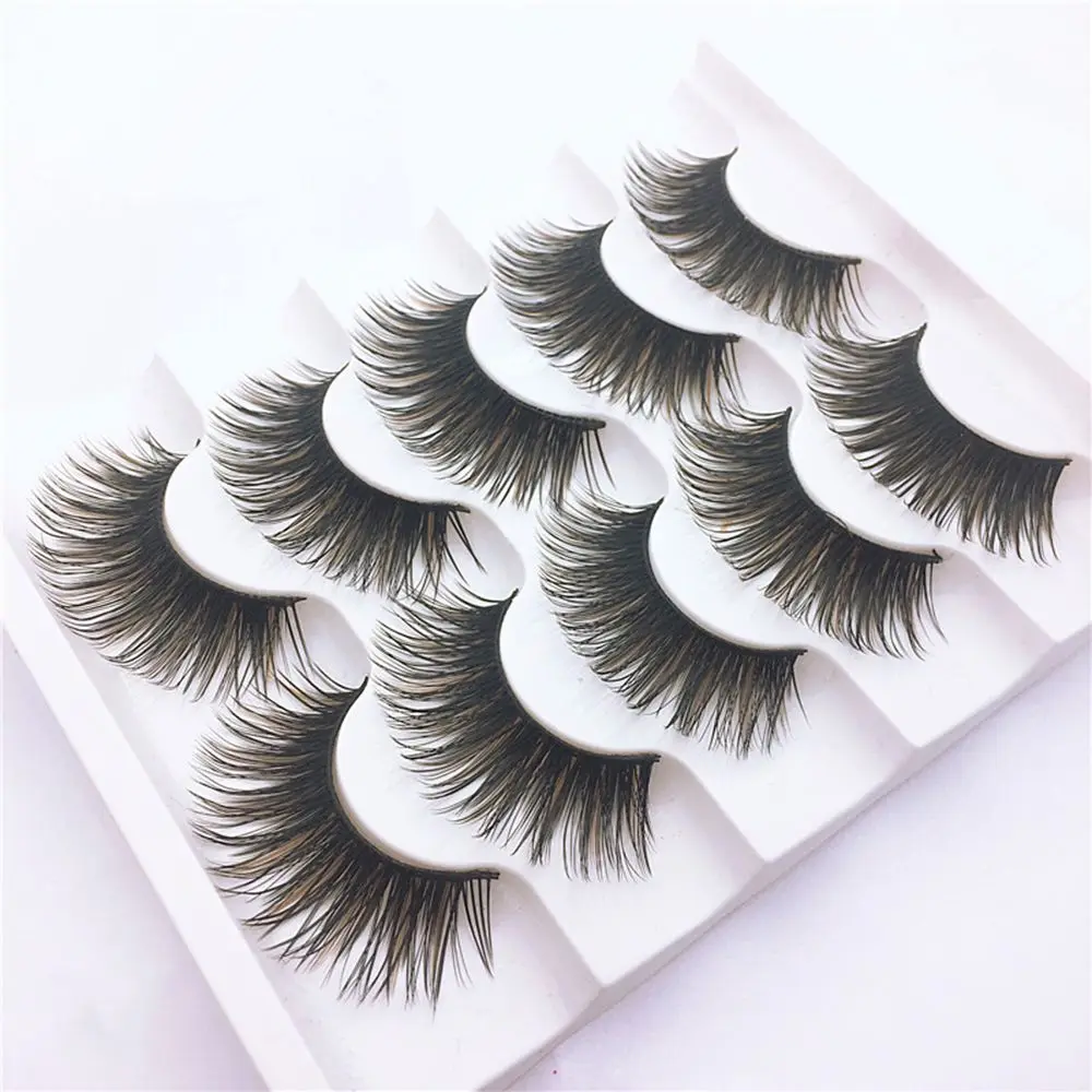 Good Chance of 5 Pairs Handmade Mink 3D Thick False Eyelashes Women Stage Party Eye Lashes Extension Makeup Tools Accessories Black & Brown