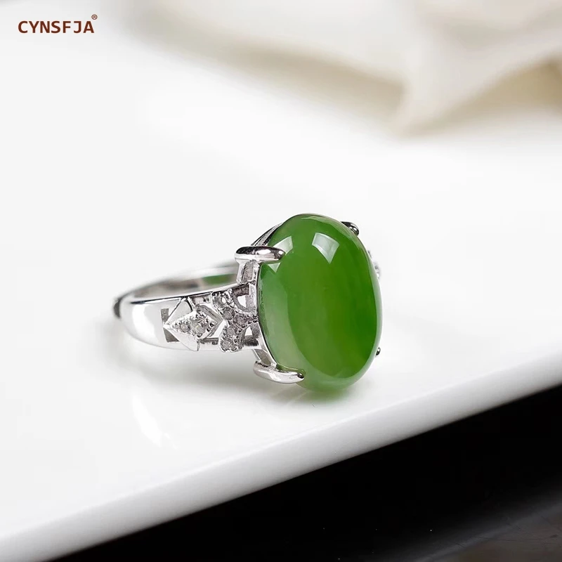 Limited Price for CYNSFJA Real Certified Natural Hetian Jasper 925 Sterling Silver Amulets Lucky Green Jade Ring High Quality Resizable Best Gifts