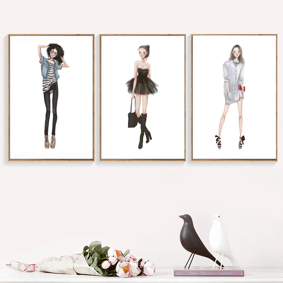 .Gallery of Fashion Girl Nordic Poster And Prints Wall Art Canvas Painting Scandinavian Wall Pictures For Living Room Bedroom Home Decor