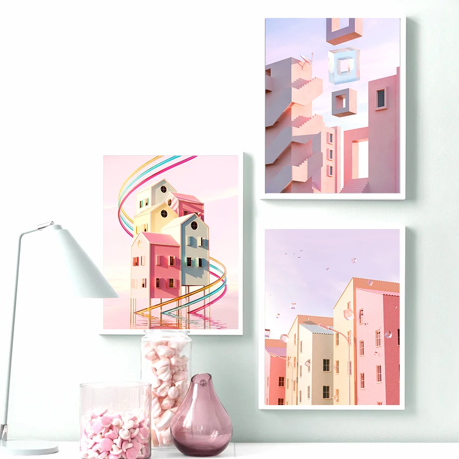 .Gallery for Geometric House Colorful Rainbow Cloud Wall Art Canvas Painting Nordic Posters And Prints Wall Picture For Living Room Decor